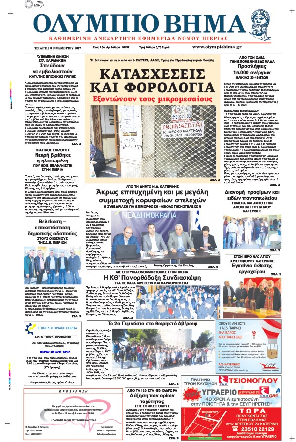 Η καθημερινή εφημερίδα για την Κατερίνη και την Πιερία, από το 1974, στην ηλεκτρονική της έκδοση.