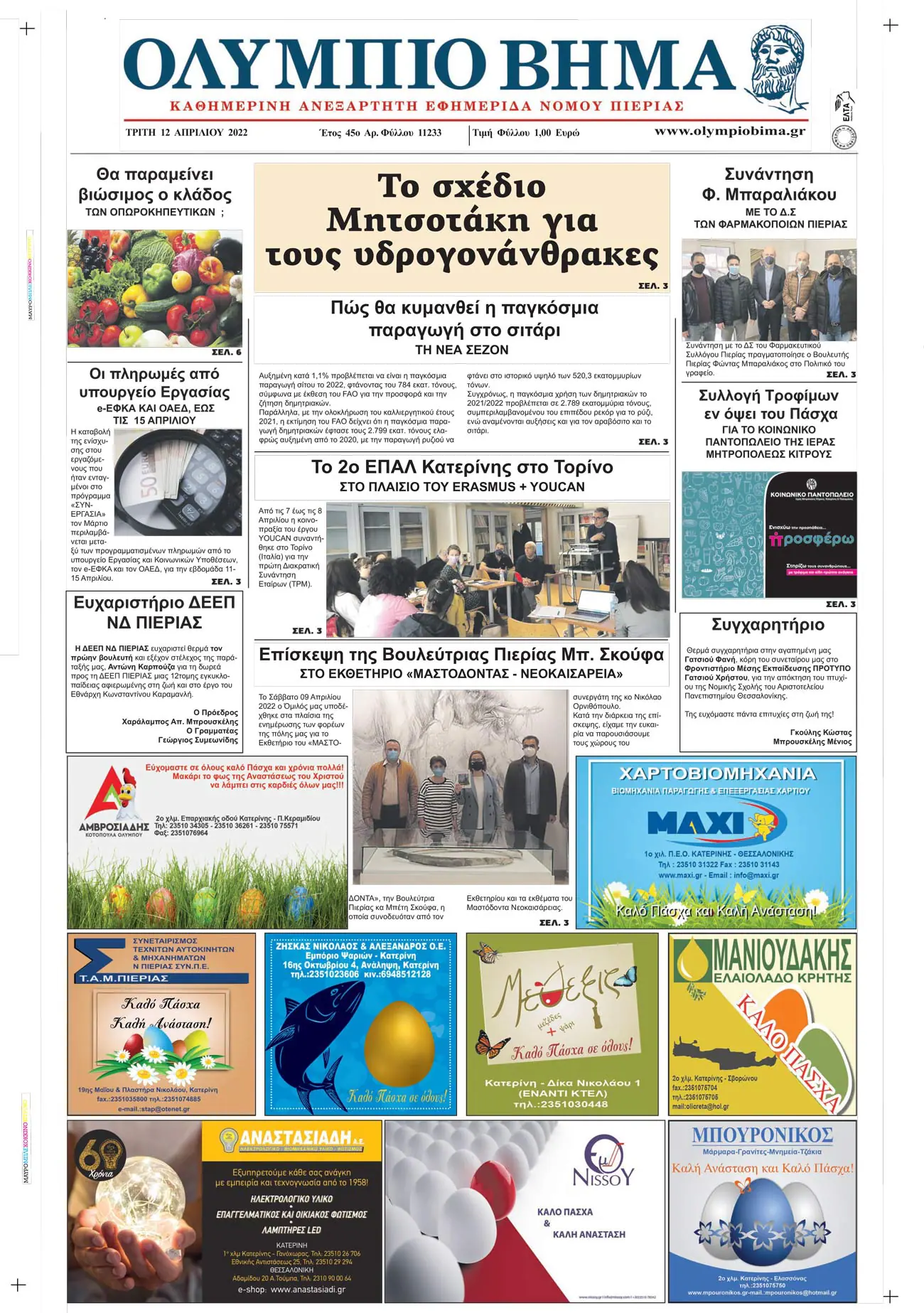 Μείνετε ενημερωμένοι με αξιόπιστες ειδήσεις από την Κατερίνη, την Πιερία, την Ελλάδα και τον κόσμο, καθημερινά στο olympiobima.gr.