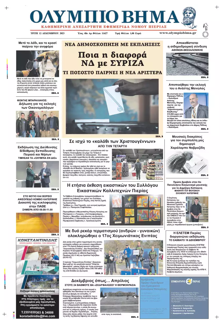 Μείνετε ενημερωμένοι με αξιόπιστες ειδήσεις από την Κατερίνη, την Πιερία, την Ελλάδα και τον κόσμο, καθημερινά στο olympiobima.gr.