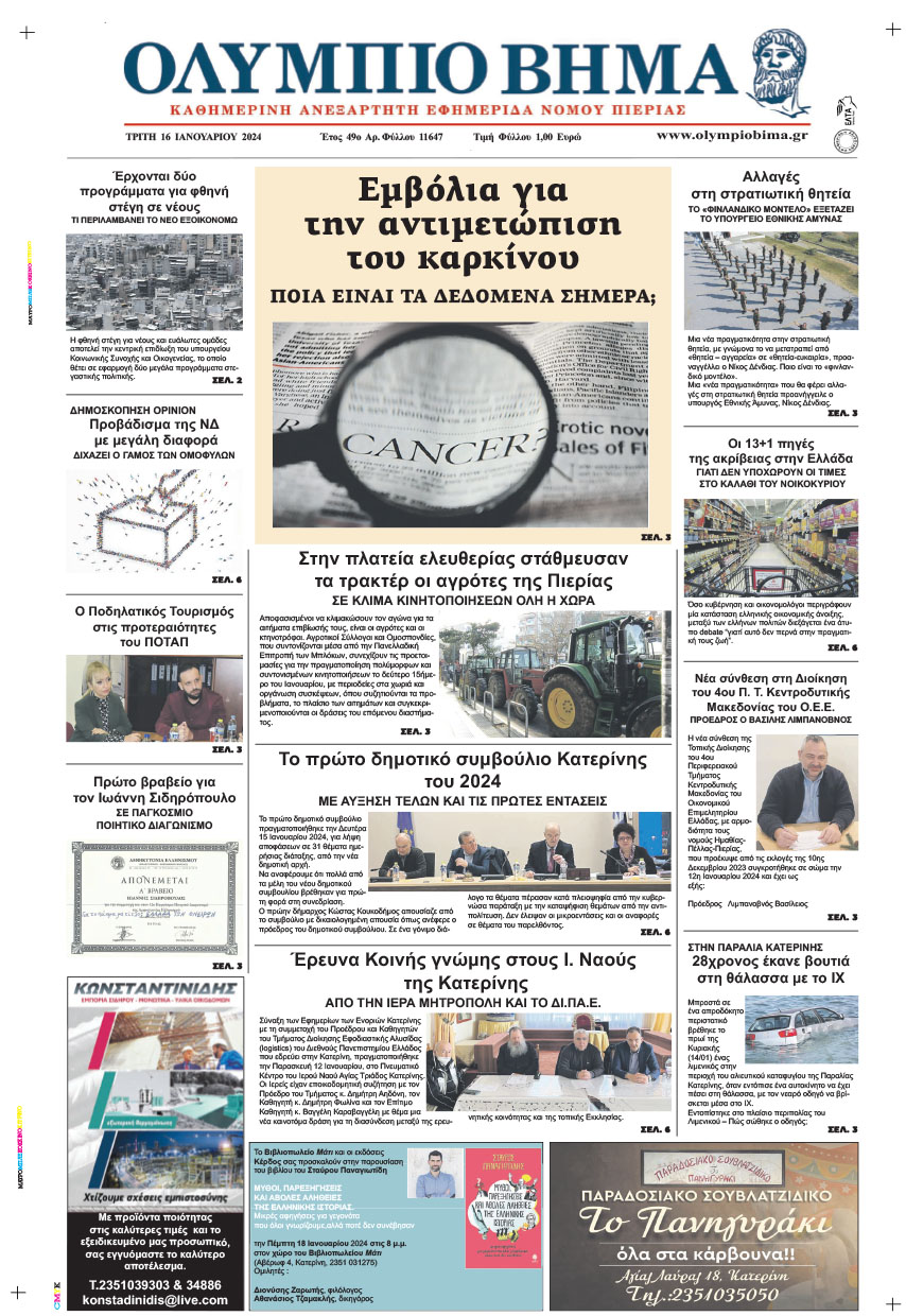 Μείνετε ενημερωμένοι με αξιόπιστες ειδήσεις από την Κατερίνη, την Πιερία, την Ελλάδα και τον κόσμο, καθημερινά στο olympiobima.gr.