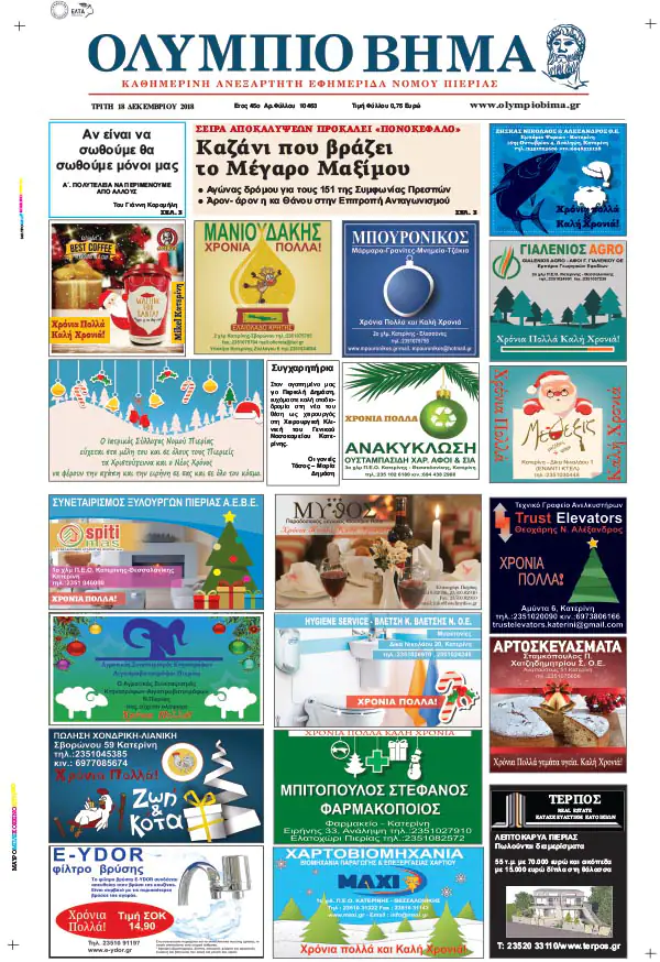 Η καθημερινή εφημερίδα για την Κατερίνη και την Πιερία, από το 1974, στην ηλεκτρονική της έκδοση.