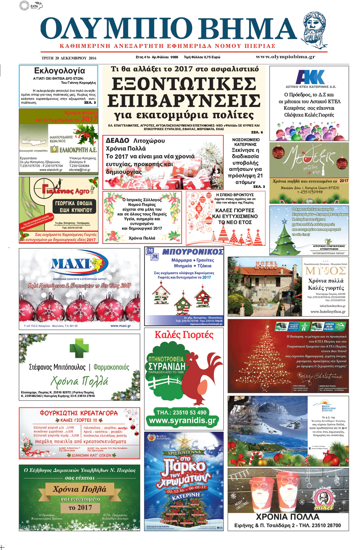 Τρίτη 20 Δεκεμβρίου 2016