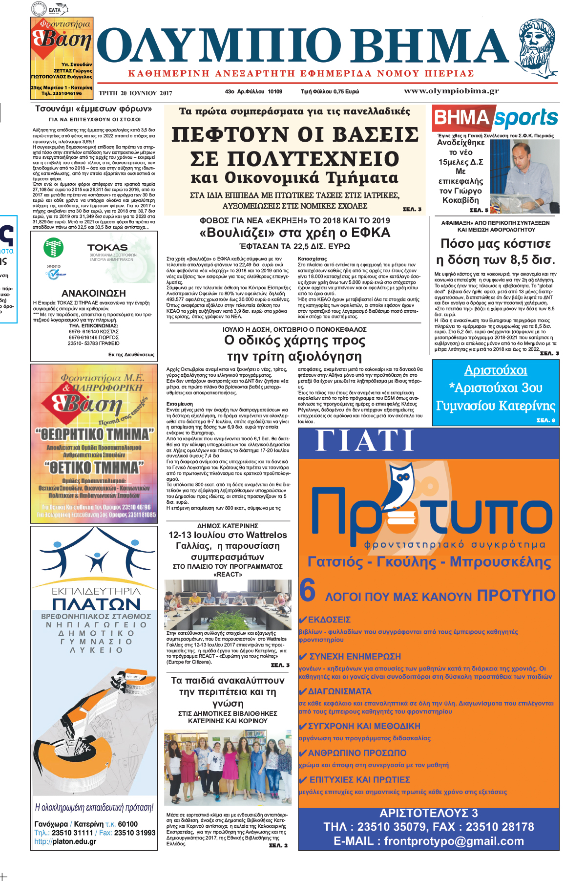 Η καθημερινή εφημερίδα για την Κατερίνη και την Πιερία, από το 1974, στην ηλεκτρονική της έκδοση.
