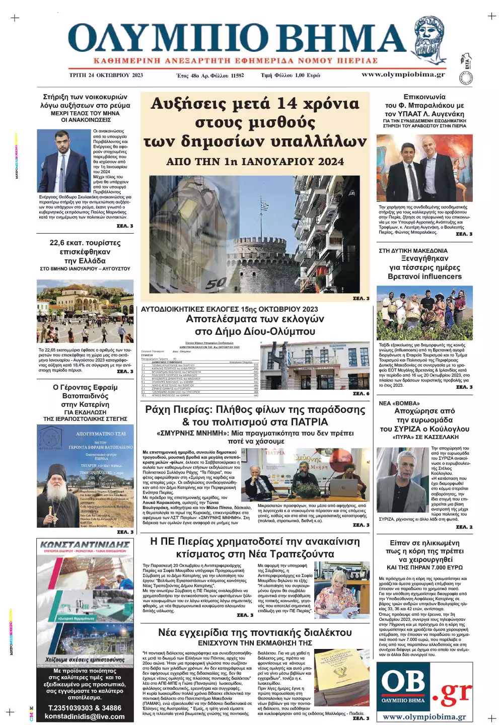 Η καθημερινή εφημερίδα για την Κατερίνη και την Πιερία, από το 1974, στην ηλεκτρονική της έκδοση.
