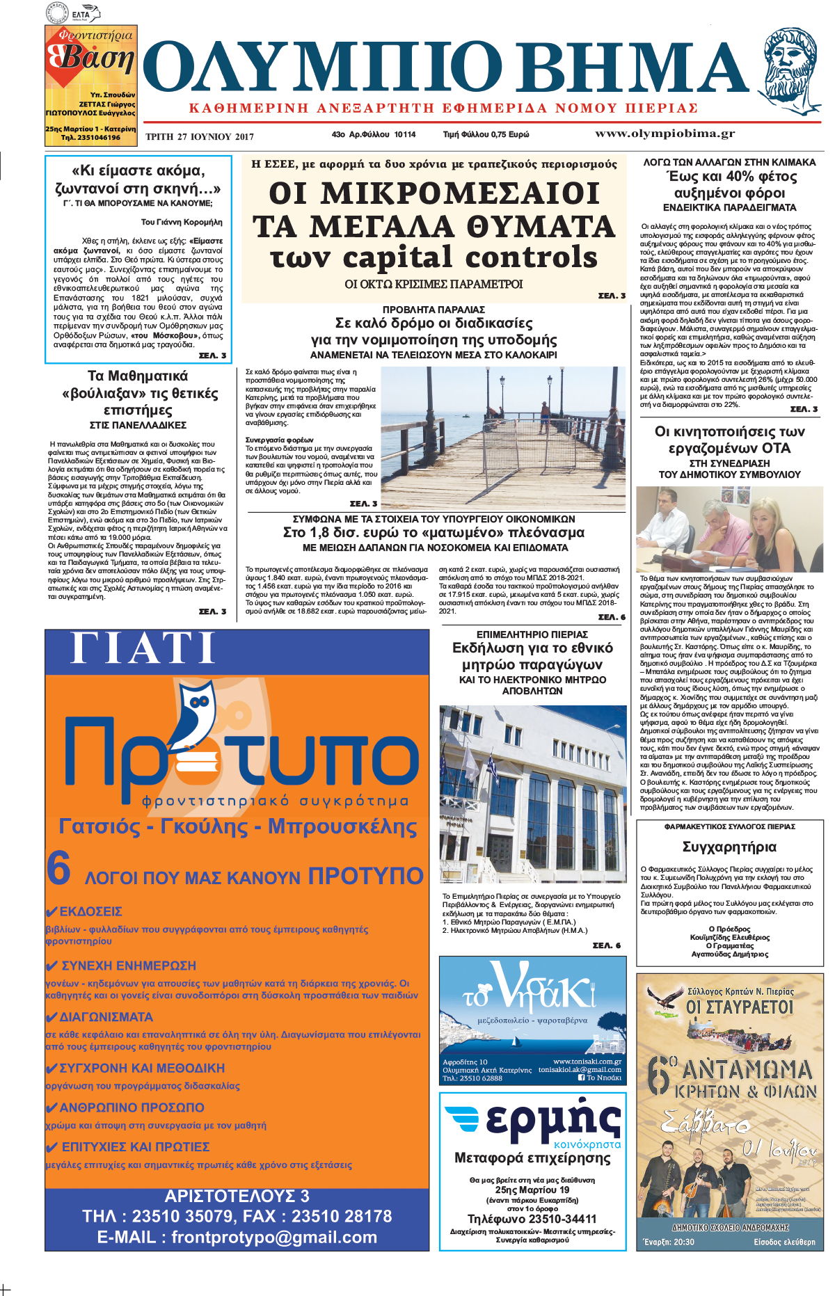 Η καθημερινή εφημερίδα για την Κατερίνη και την Πιερία, από το 1974, στην ηλεκτρονική της έκδοση.