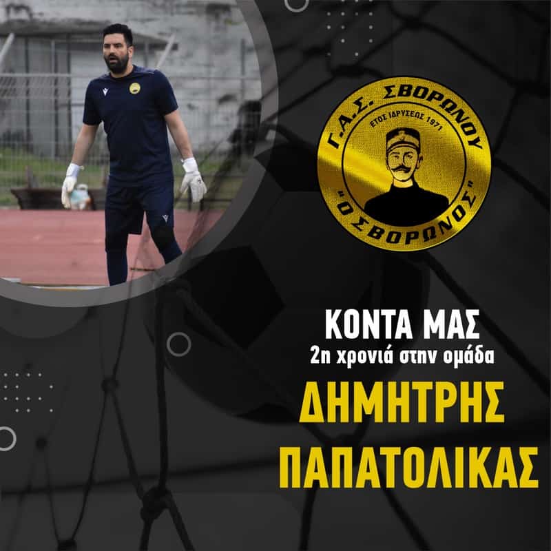 Ο πρόεδρος και η διοίκηση του ΓΑΣ Σβορώνου είναι στην ευχάριστη θέση να ανακοινώσουν την ανανέωση της συνεργασίας με τον γκολκίπερ Δημήτρη Παπατολίκα.