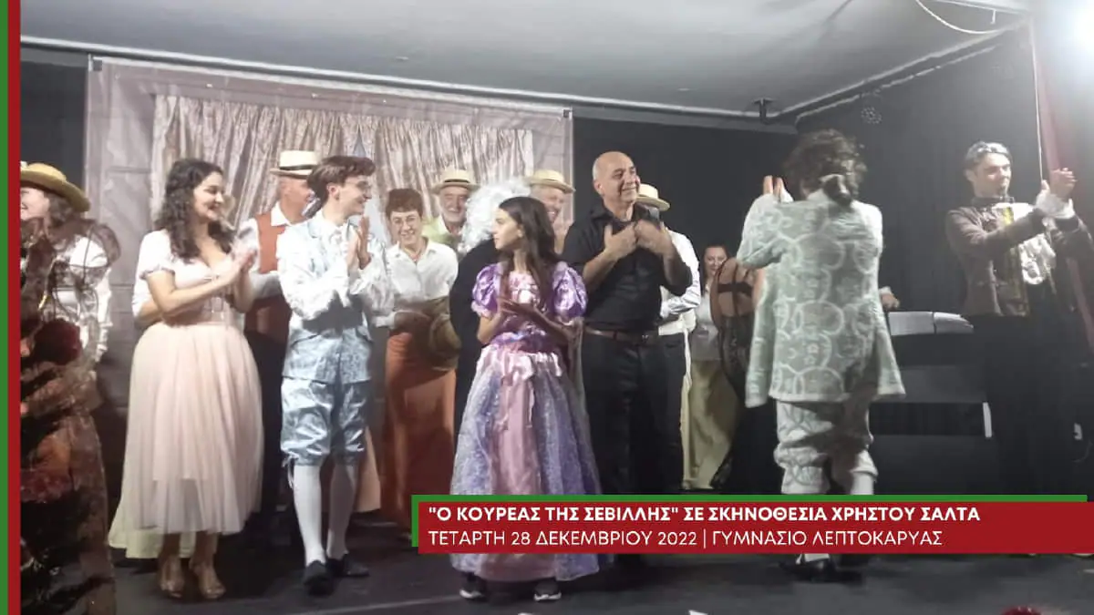 Με τη συμμετοχή 40 ηθοποιών, τραγουδιστών και μουσικών ανέβηκε την Τετάρτη 28 Δεκεμβρίου 2022 στην αίθουσα εκδηλώσεων του Γυμνασίου Λεπτοκαρυάς η παιδική μουσική παράσταση για μικρούς και μεγάλους “Ο Κουρέας της Σεβίλλης” σε σκηνοθεσία Χρήστου Σάλτα.