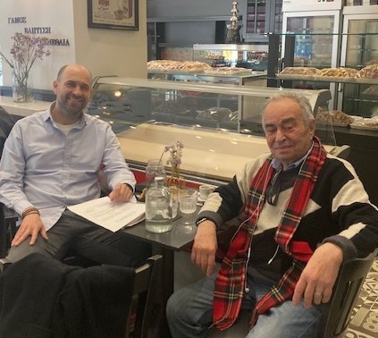 Γιώργος Πιπερόπουλος, Θανάσης Κόκκινος μαζί για Καφεδάκι..     Η διαφορά ηλικίας αποκλείει τη σκέψη ότι θυμήθηκαν τα παλιά και το ίδιο ισχύει και με τις επιστημονικές τους σπουδές οπότε η περιέργεια αυξάνεται αλλά υπάρχει σοβαρή και ωραία απάντηση.