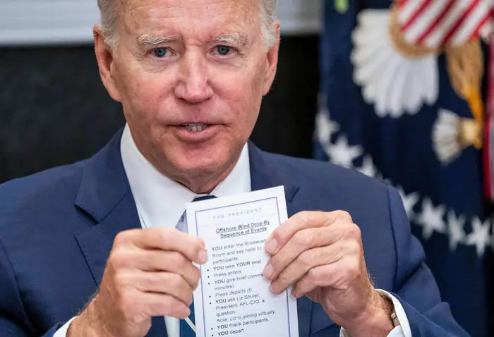 Στη διάρκεια της συνάντησης με στελέχη της αιολικής βιομηχανίας στην αίθουσα Ρούσβελτ του Λευκού Οίκου, ο Μπάιντεν έδειξε στους φωτογράφους το σχέδιο οκτώ σημείων για το πώς πρέπει να συμπεριφέρεται. Αντί να αναφερθεί ονομαστικά στον «Πρόεδρο», ο συγγραφέας του σημειώματος αναφερόταν στον Μπάιντεν ως «ΕΣΕΙΣ», με έντονα κεφαλαία γράμματα.