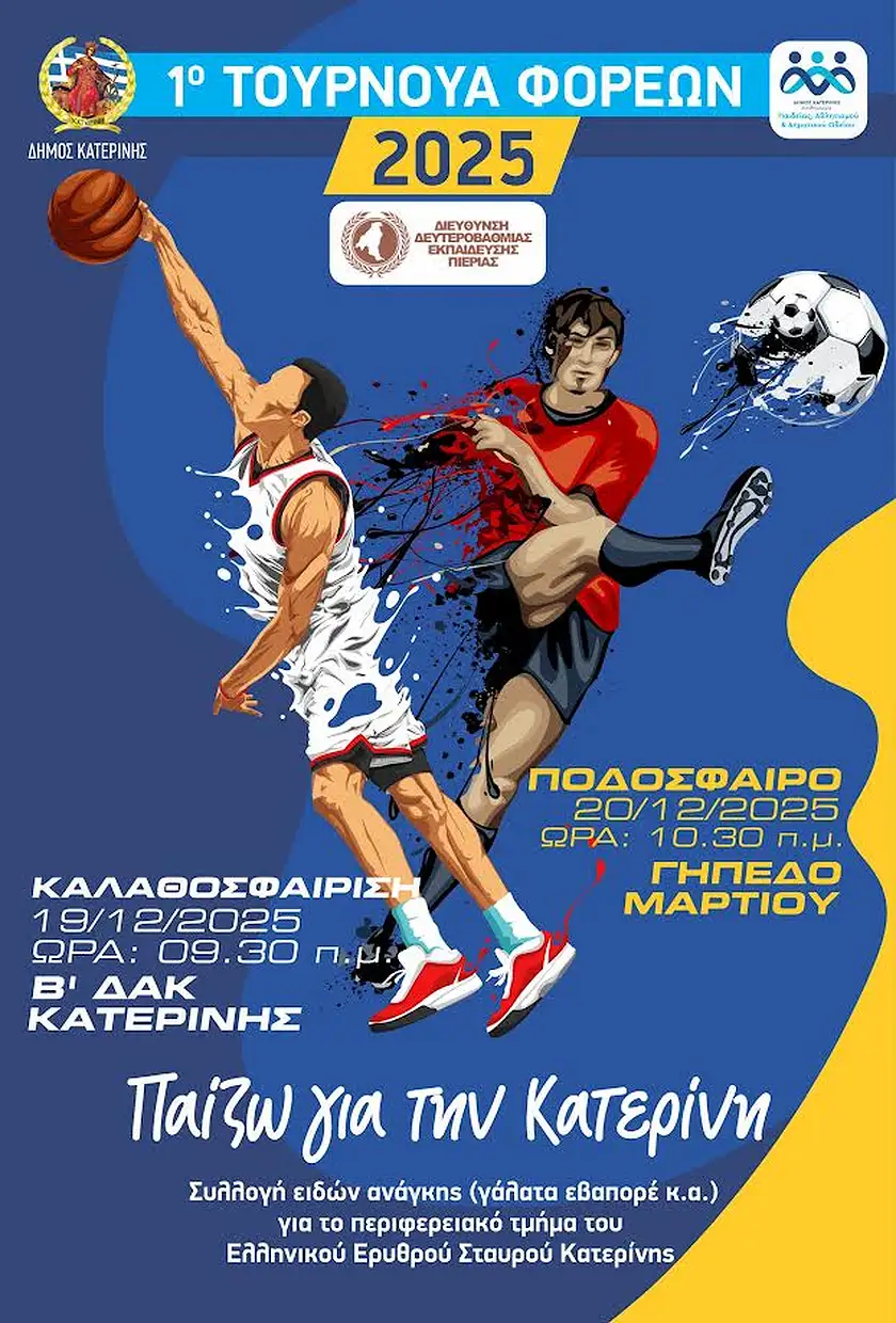 Το πρώτο βήμα για την καθιέρωση ενός θεσμού που θα συνδέει κάθε χρόνο τα γήπεδα με την κοινωνία, προσκαλώντας όλη την πόλη να συμμετέχει και να γίνει ενεργό μέρος αυτής της μεγάλης γιορτής αθλητισμού και ανθρωπιάς κάνει ο Δήμος Κατερίνης, με τη διοργάνωση του 1ου Τουρνουά Φορέων «Παίζω για την Κατερίνη».