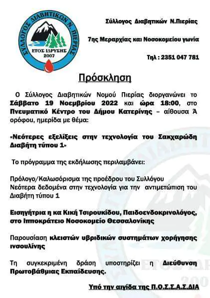 Hμερίδα με θέμα: «Νεότερες εξελίξεις στην τεχνολογία του Σακχαρώδη Διαβήτη τύπου 1»