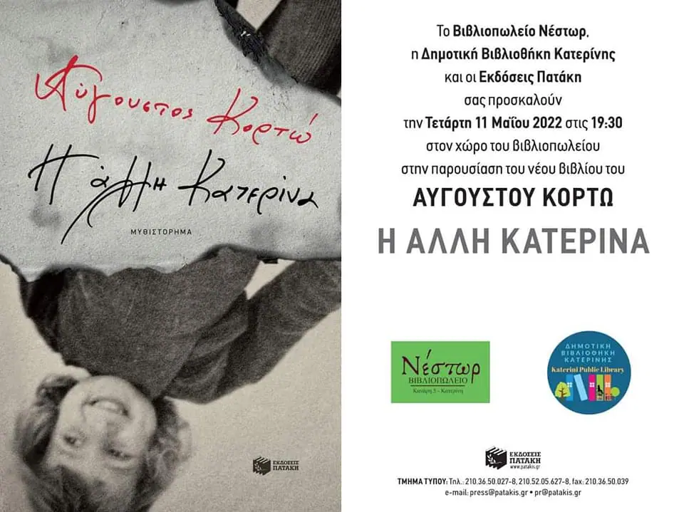 Το νέο του βιβλίο, με τίτλο «Η άλλη Κατερίνα», θα παρουσιάσει στην πόλη μας ο συγγραφέας Αύγουστος Κορτώ.