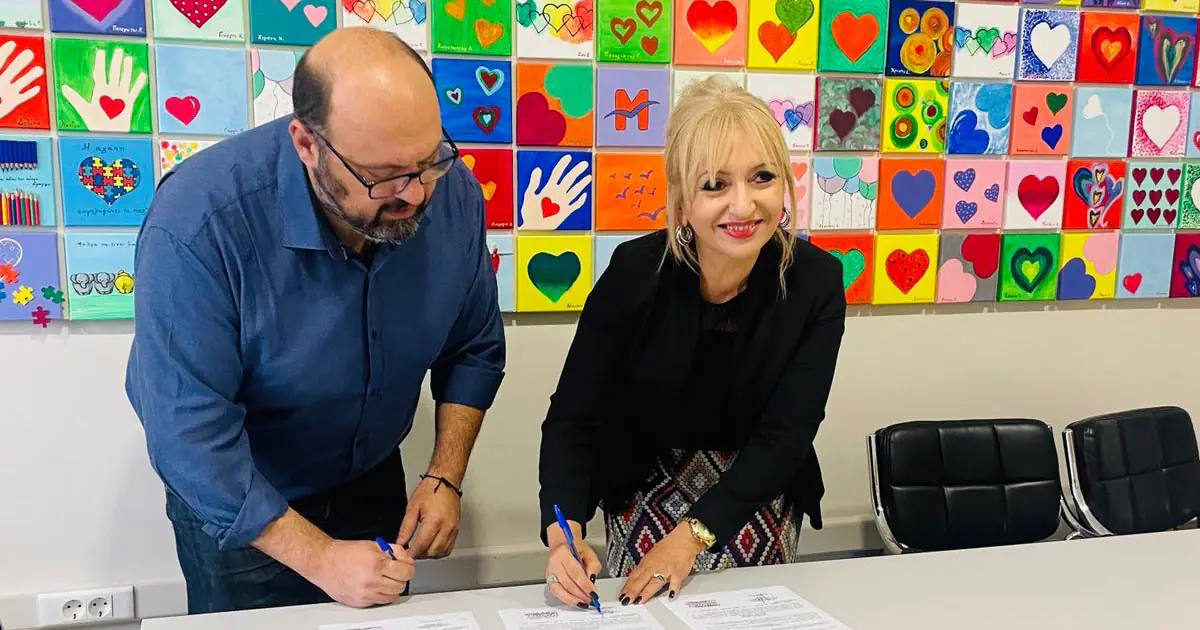 Κατά τη διάρκεια της επίσκεψής της υπέγραψε μαζί με τον Πρόεδρο του Δ.Σ. της Μέριμνας Παιδιού κ. Δημήτρη Καραπούλιο τη σύμβαση για την έκδοση του λευκώματος που θα παρουσιάζει το σπουδαίο και πολυσχιδές έργο της Μέριμνας όλα αυτά τα χρόνια.