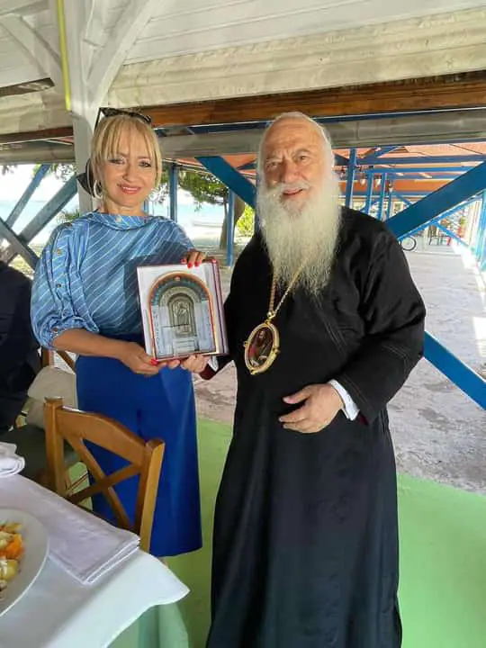 Η Αντιπεριφερειάρχης προσέφερε στο Σεβασμιώτατο Αρχιεπίσκοπο Κρήτης κ.κ. Ευγένιο το νεοεκδοθέν ιστορικό-φωτογραφικό λεύκωμα με τα Προσκυνήματα της Πιερίας, ενώ παράλληλα δέχθηκε από τον Σεβασμιώτατο Μητροπολίτη Βεροίας κ. Παντελεήμονα, το αναμνηστικό της φετινής διοργάνωσης των ”Παυλείων”.