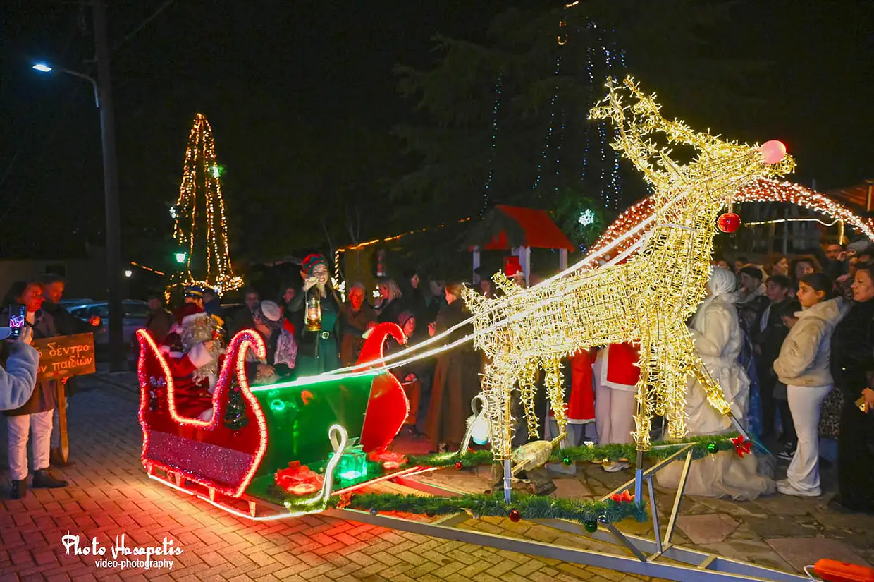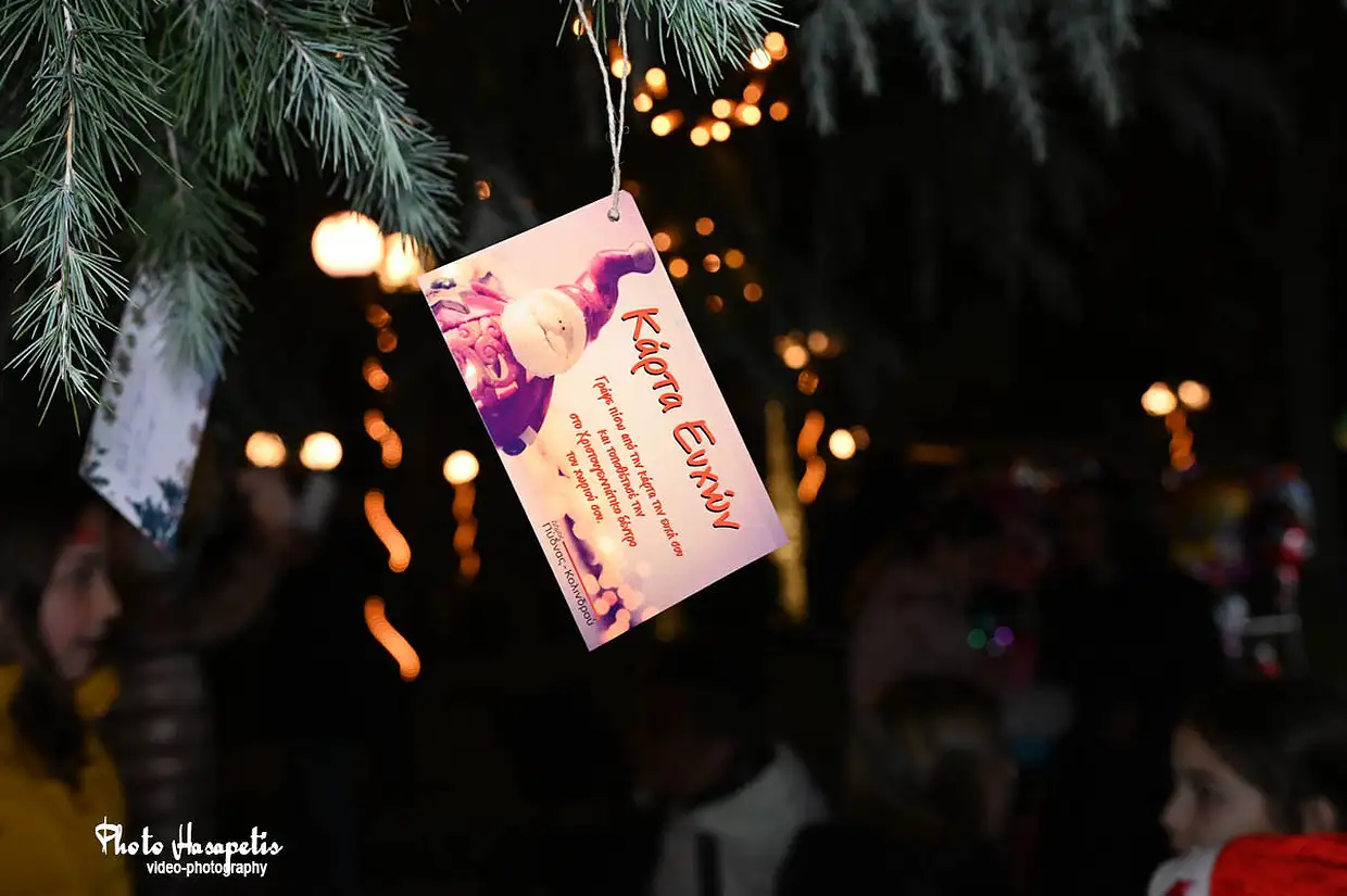 Ο Άγιος Βασίλης έκανε την εμφάνισή του συνοδευόμενος από πλήθος κόσμου. Η πομπή κατέληξε στην κεντρική πλατεία, όπου το δέντρο των παιδιών άναψε μετά το στολισμό με τις κάρτες ευχών των μικρών συμμετεχόντων, δημιουργώντας μια μαγική ατμόσφαιρα.