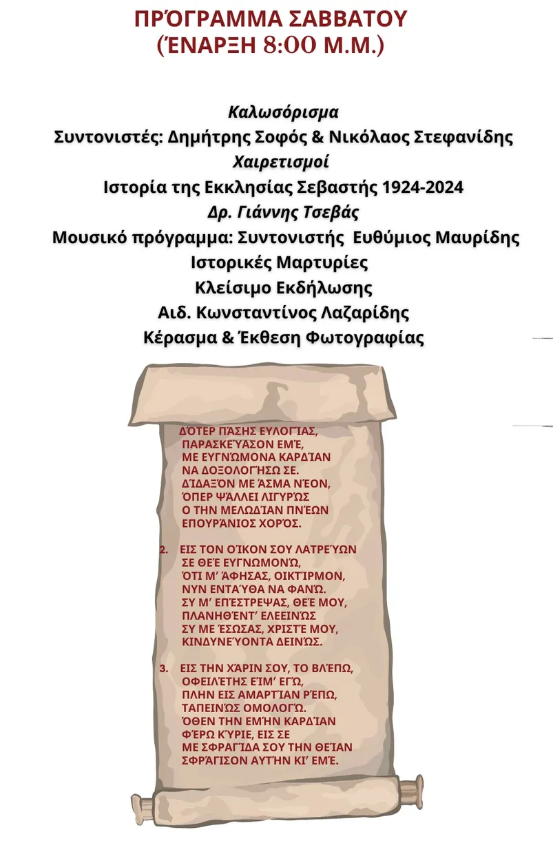 Η Ελληνική Ευαγγελικη Εκκλησια Σεβαστής γιορτάζει τα 100 χρόνια από την ίδρυση της