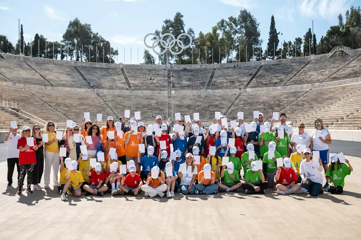Αφού έγινε διάλογος με τα παιδιά για τις Ολυμπιακές Αξίες σήκωσαν όλοι μαζί ένα μεγάλο άσπρο πανί μέσα στο Παναθηναϊκό Στάδιο στέλνοντας ένα μεγάλο μήνυμα ειρήνης και ενότητας σε ολόκληρη την Ολυμπιακή οικογένεια.