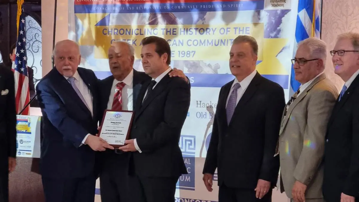 Παρουσία του ομοσπονδιακού βουλευτή από τη Νέα Ιερσέη κ. Φρανκ Παλόν που επισκέφθηκε πρόσφατα την Ελλάδα, του προέδρου της πολιτειακής βουλής της Νέας Ιερσέης κ. Κρεγκ Κόφλιν (Craig Coughlin) , του πολιτειακού γερουσιαστή του Ροντ Άιλαντ, Λου Ραπτάκη, του εκπροσώπου της Ελληνικής πρεσβείας στην Ουάσινγκτον κ. Στέφανο Σπύρου, της διευθύντριας του γραφείου Δημόσιας Διπλωματίας στη Νέα Υόρκη κ. Μαρία Βαξεβανίδου, του συμβούλου επικοινωνίας Α του γραφείου Δημόσιας Διπλωματίας στη Νέα Υόρκη κ. Σάκη Φλώρου, του διευθυντή του Γραφείου Οικονομικών και Εμπορικών Υποθέσεων στη Νέα Υόρκη κ. Νίκο Θωμόπουλο, των πρώην προέδρων της AHEPA, κ. Νίκου Καρακώστα και κ. Γιώργου Χωριάτη, του κ. Πάνου Σταυριανίδη, του αντιπροέδρου της Κυπριακής Ομοσπονδίας Αμερικής κ. Τάσο Ζαμπά, του επιτίμου προέδρου του Διεθνούς Ιδρύματος Μεγάλου Αλεξάνδρου κ. Π. Μιτούλη, του πρώην προέδρου της Ανωτάτης Αρχής του Διεθνούς Ιδρύματος Μεγάλου Αλεξάνδρου κ. Φώτη Γερασόπουλου, του πρώην ύπατου προέδρου Παμμακεδονικής Δρ. Γ. Αχταρίδη και του Chairman της επετειακής αυτής εκδήλωσης, προέδρου της φαρμακευτικής εταιρείας Sigmapharm Laboratorie, Δρ. Σπύρου Σπυρέα, αλλά και πλήθος άλλων διακεκριμένων ομογενών, ο πρόεδρος των HELLENIC NEWS OF AMERICA κ. Πωλ Κοτρώτσιος βράβευσε τον Πρόεδρο κ. Διονύση Πασχάλη.