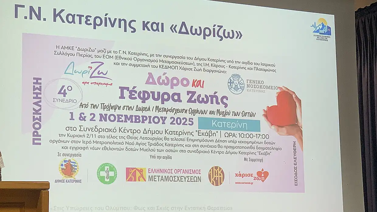 Στο πνευματικό κέντρο Κατερίνης φιλοξενήθηκε την Παρασκευή 10 Οκτωβρίου 2025 στις 19:20 η εναρκτήρια τελετή της 1ης  επιστημονικής διημερίδας ΜΕΘ Κατερίνης «Στις Υπώρειες του Ολύμπου: Φως και Σκιές στην Εντατική Θεραπεία».