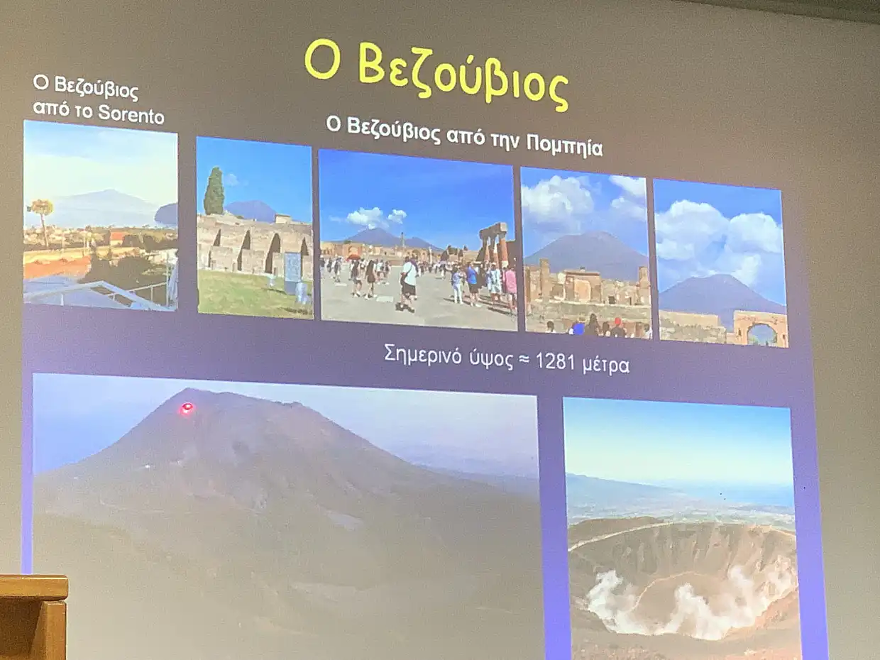 Η εναρκτήρια τελετή έκλεισε με την ενδιαφέρουσα ομιλία του ομότιμου καθηγητή του ΕΚΠΑ, Γεώργιου Μπαλτόπουλου, με τίτλο «Πεθαίνοντας στις Υπώρειες του Βεζούβιου το 79 μ.Χ.».