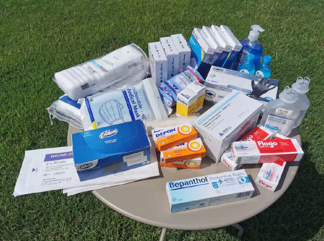 Τα φαρμακεία περιέχουν όλα τα απαραίτητα υλικά που πρέπει να έχει στη διάθεσή του ένα σχολείο ή μια υπηρεσία, μεταξύ άλλων γάζες, επιδέσμους, επιθέματα, απολυμαντικά επιφανειών και χεριών, μάσκες, γάντια, αλοιφές εγκαυμάτων, παυσίπονα, οινόπνευμα, φυσιολογικό ορό, βαμβάκι, betadine κ.α. Το περιεχόμενο κάθε συσκευασίας έχει ελεγχθεί σχολαστικά από επαγγελματίες φαρμακοποιούς και η αξία του ξεπερνά τα 65 ευρώ ανά συσκευασία.