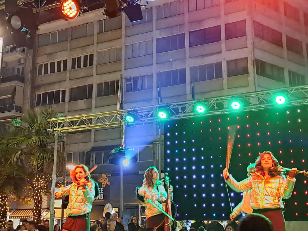 Τα φώτα του δέντρου, τα βεγγαλικά, οι μαγευτικές μελωδίες των Fortissimo, η γιορτινή ατμόσφαιρα, αλλά και «Το Πολικό Εξπρές» του Γυμναστηρίου Magic Sport Club που ήταν απόλυτα εναρμονισμένο με το πνεύμα των Χριστουγέννων. Η δεξιοτεχνία των χορευτών εντυπωσίασε .