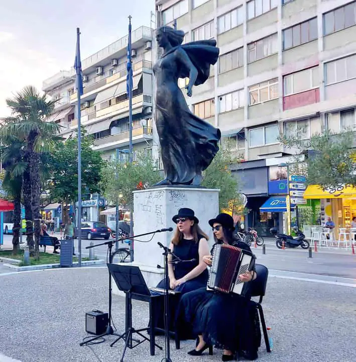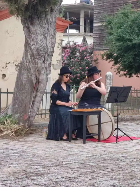 Συν-αφηγήτριες των ιστοριών της πόλης η Νατάσσα Ιωαννίδου (φλάουτο, μπεντίρ, φωνή ) και η Ευγενία Ακρίδα (ακορντεόν, φωνή).