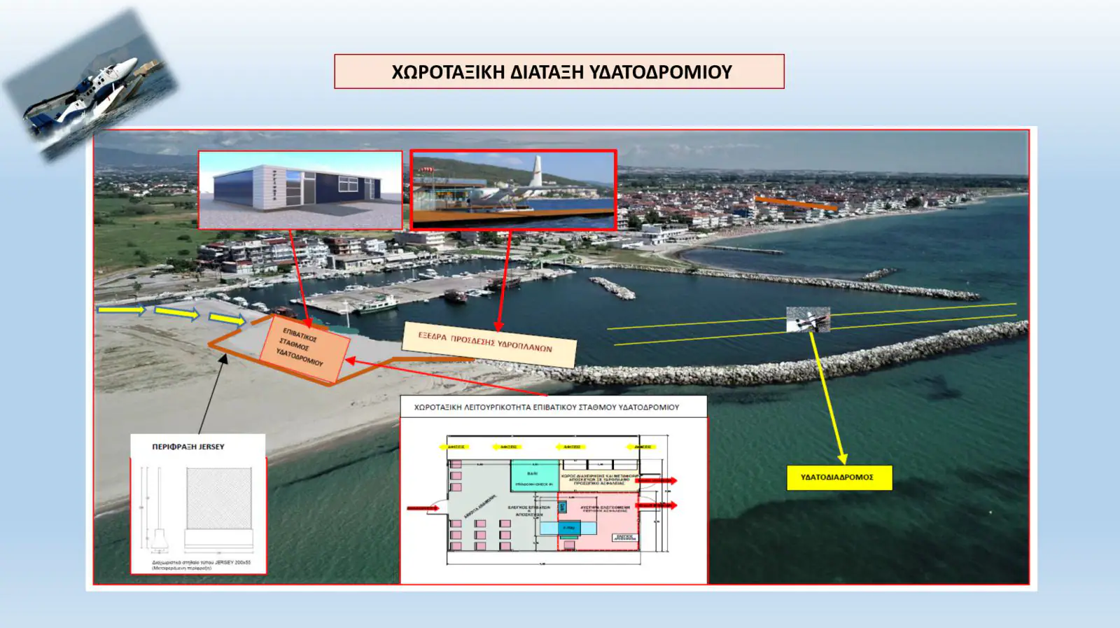 Στη διάρκεια της συνεδρίασης, το μεσημέρι της Τετάρτης 24/11, στην αίθουσα Δημοτικού Συμβουλίου του Δημαρχείου Κατερίνης, της Λιμενικής Επιτροπής του ΛΤΝ Πιερίας, έγινε από εκπροσώπους της ΔΕΠΑΝ (“Δίκτυο Ελληνικών Πόλεων για την Ανάπτυξη”), η παρουσίαση της μελέτης για το «Υδατοδρόμιο Παραλίας Κατερίνης». Η μελέτη προβλέπει όλα τα τεχνικά χαρακτηριστικά που απαιτούνται για την ίδρυσή του, το σχέδιο ασφαλείας, το σχέδιο πτήσης, την αρχιτεκτονική μελέτη των κτιρίων που πρόκειται να τοποθετηθούν στο Λιμάνι, καθώς και τους υδατοδιαδρόμους για την προσθαλάσσωση-αποθαλάσσωση των υδροπλάνων.