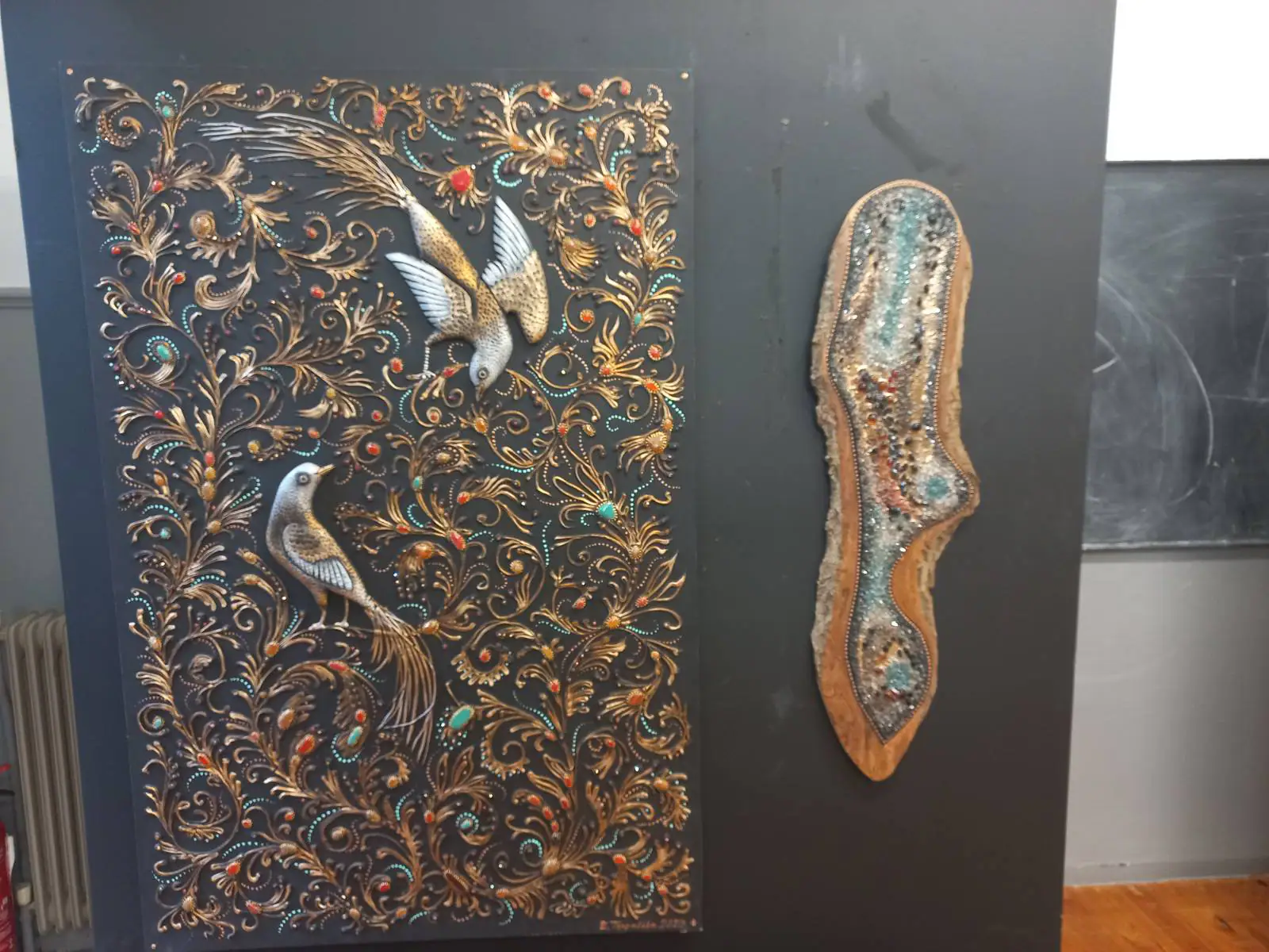 Τα έργα της ευφάνταστα και δημιουργικά γεμίζουν τον χώρο της Αστικής Σχολής με έντονα χρώματα και μαγευτικές εικόνες που «μαγνητίζουν» από το πρώτο λεπτό τον θεατή. Όλα τα έργα έχουν δημιουργηθεί από την αρχή μέχρι το τέλος από την ίδια την καλλιτέχνη. Στην έκθεση παρευρέθηκε ο Πρόεδρος, Γιάννης Νταντάμης και η Αντιπρόεδρος του Οργανισμού Πολιτισμού (ΟΠΠΑΠ), Μιράντα Παππά για να συγχαρούν την καλλιτέχνη.