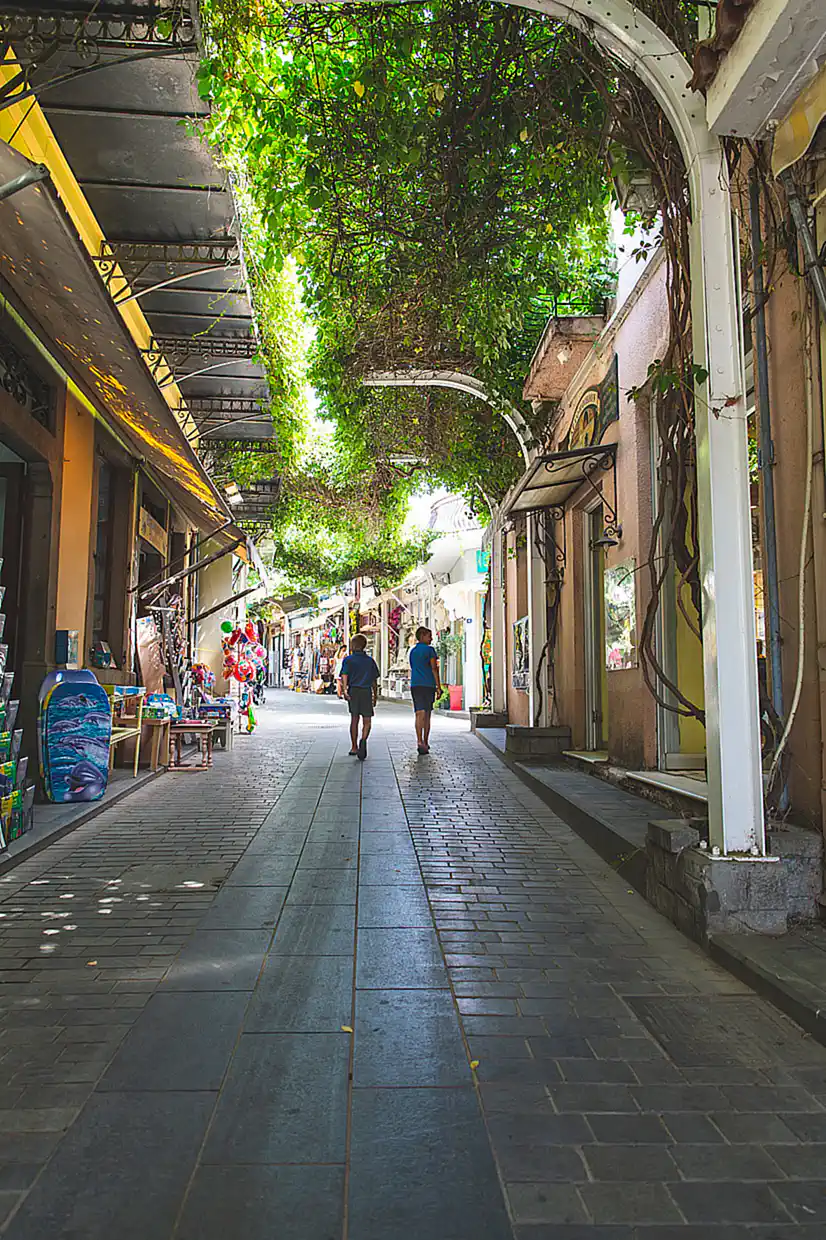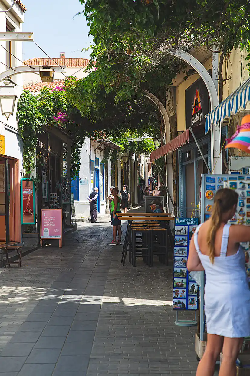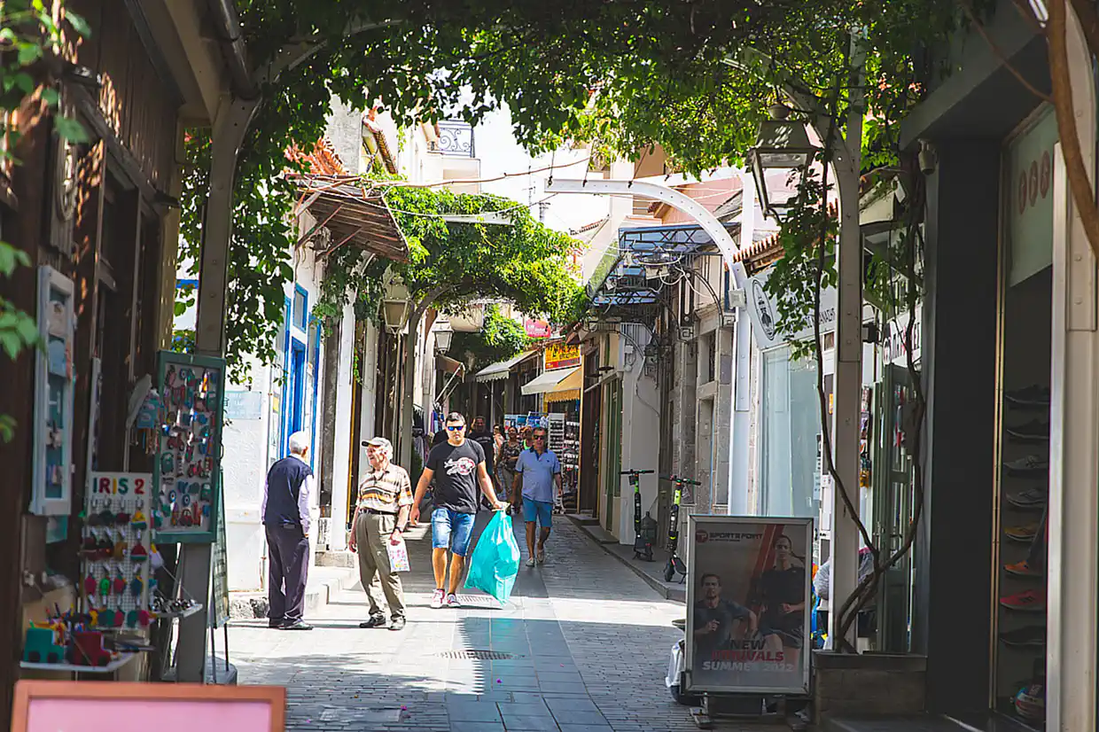 Εδώ θα βρεις τα πάντα, από μαγαζιά, μέχρι καφετέριες, ένα εκκλησάκι, ένα κουρείο, τράπεζες, γυράδικα, τουριστικά είδη, προϊόντα του νησιού κλπ.