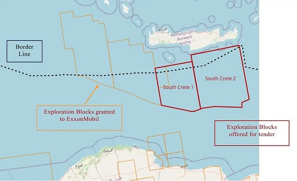 - Δύο από τις περιοχές που ανακοινώθηκαν, οι οποίες είναι η Κρήτη 1 και η Κρήτη 2, βρίσκονται γεωγραφικά εντός των θαλάσσιων περιοχών της Λιβύης (επί των οποίων οι δύο χώρες έχουν διαφορετικές αξιώσεις ως προς τα δικαιώματά τους), η έκταση των δύο περιοχών είναι 23.300 τετραγωνικά χιλιόμετρα, και περισσότερο από το 85% της έκτασης αυτής εμπίπτει νότια της συνοριακής γραμμής που χωρίζει τη Λιβύη από τη γειτονική της χώρα, την Ελλάδα.