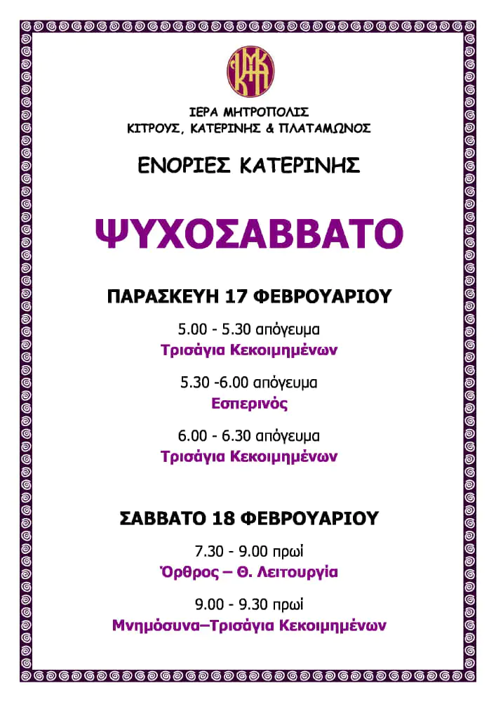Ι. Μητρόπολη Κίτρους, Κατερίνης και Πλαταμώνος – Ψυχοσάββατο