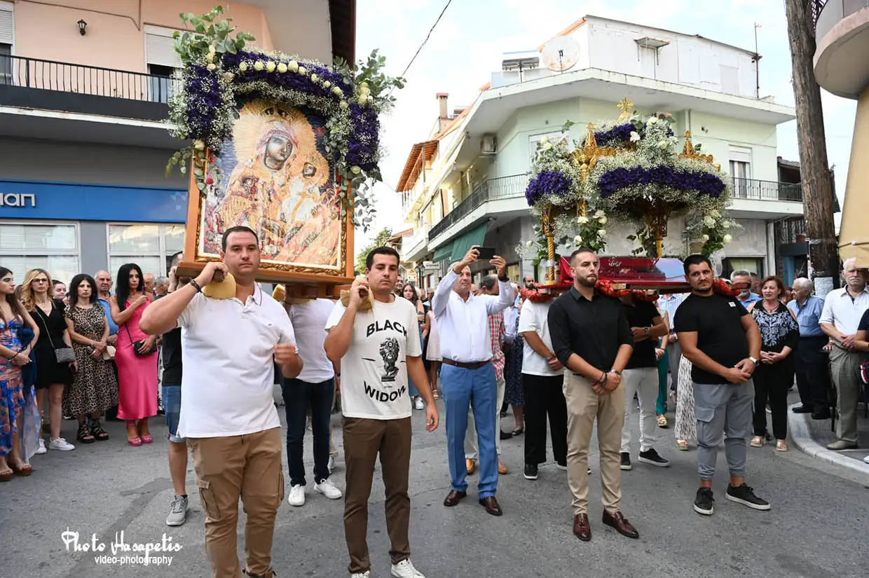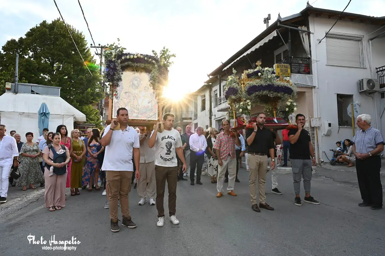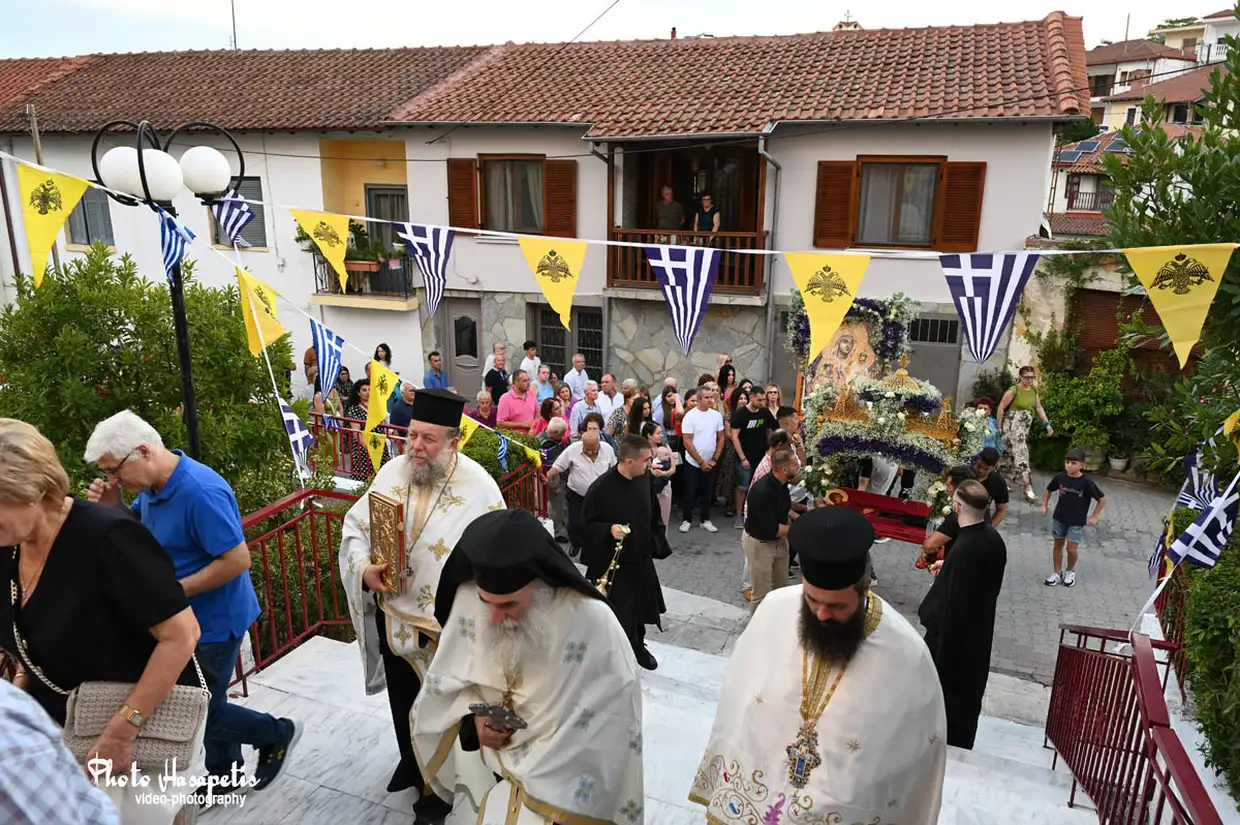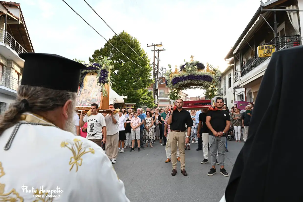 Με ξεχωριστή μεγαλοπρέπεια, όπως αρμόζει στη μεγάλη γιορτή του Δεκαπενταύγουστου πραγματοποιήθηκε την παραμονή της Παναγίας (14/8/2025) η περιφορά της εικόνας της Παναγίας του Μετοχιού και του Επιταφίου στον Κολινδρό.