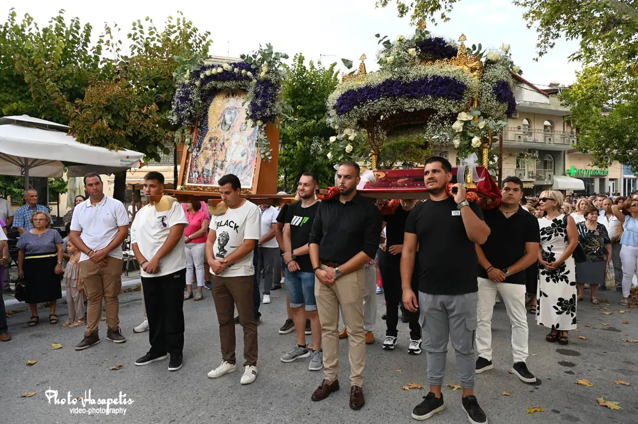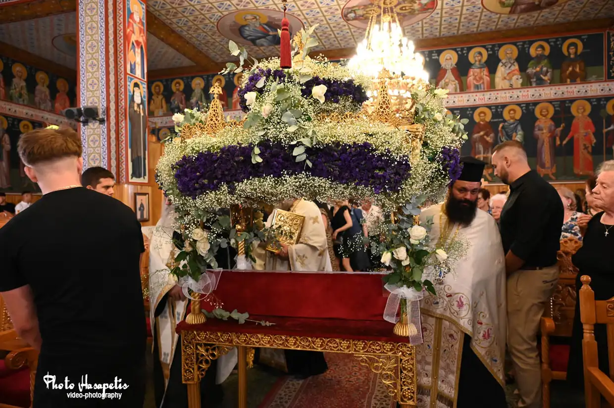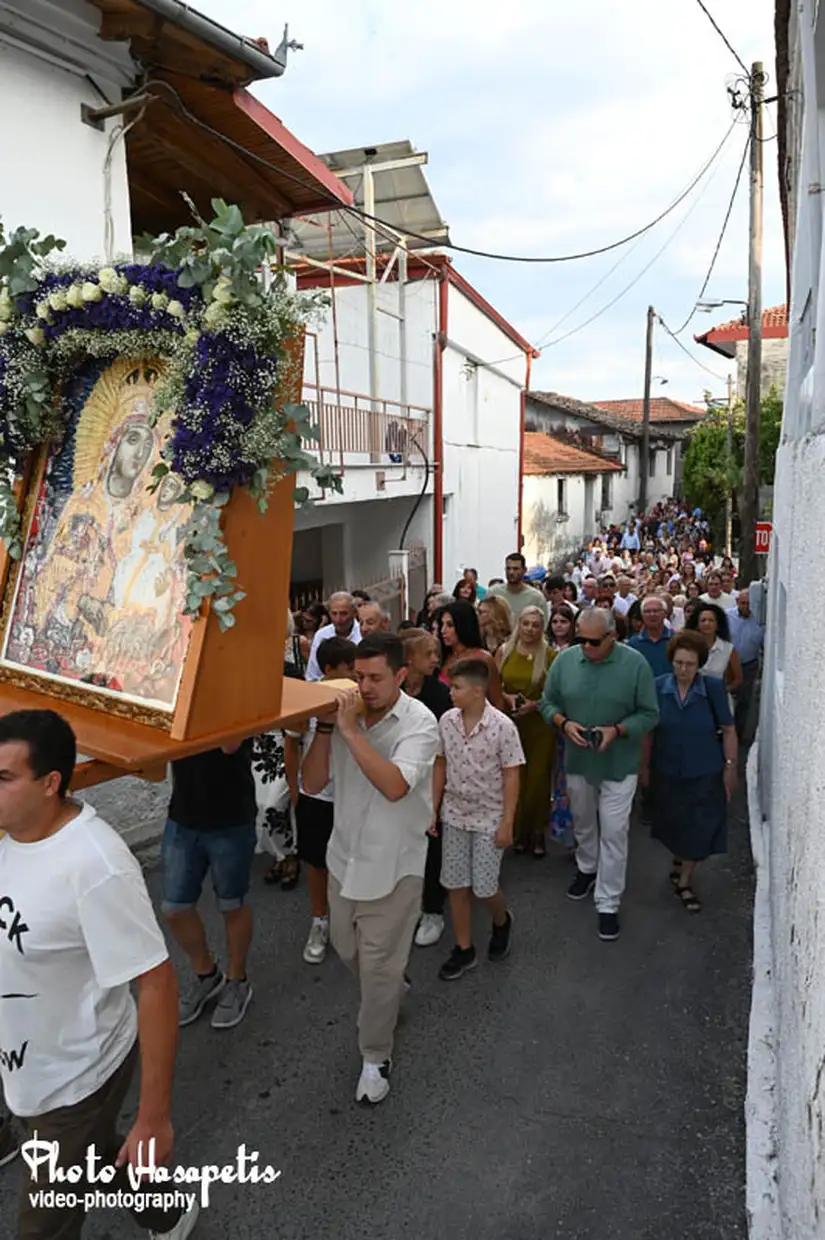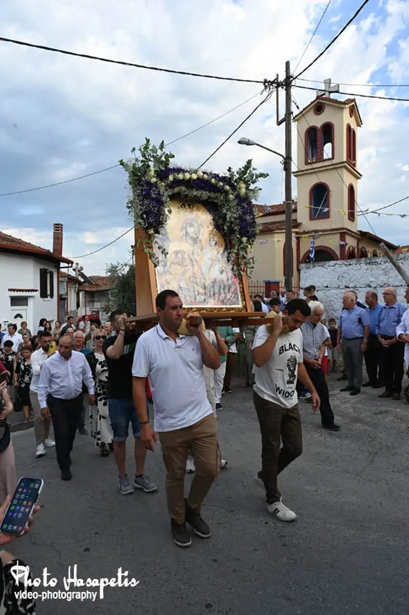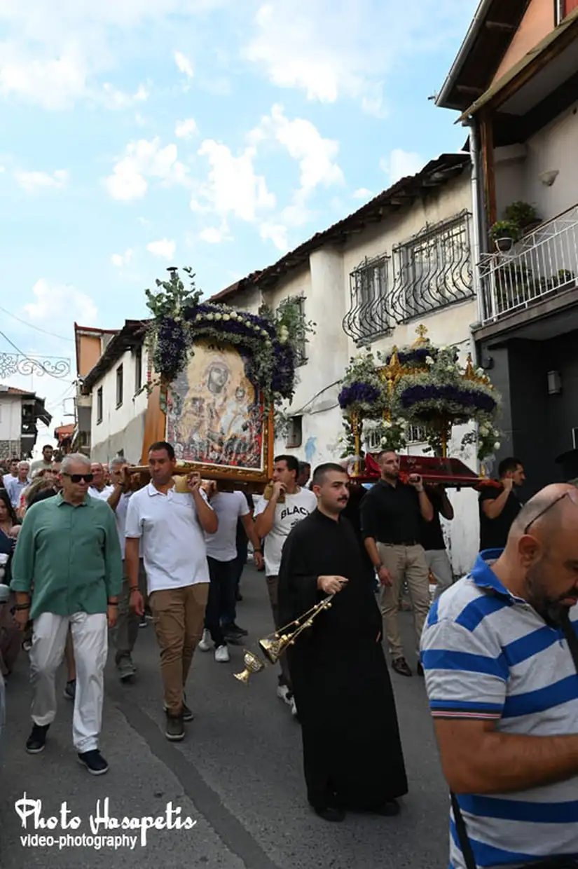 Με ξεχωριστή μεγαλοπρέπεια, όπως αρμόζει στη μεγάλη γιορτή του Δεκαπενταύγουστου πραγματοποιήθηκε την παραμονή της Παναγίας (14/8/2025) η περιφορά της εικόνας της Παναγίας του Μετοχιού και του Επιταφίου στον Κολινδρό.