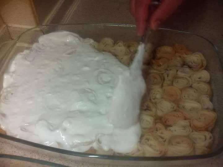 • Βάζουμε ένα καπάκι η μια μεμβράνη επάνω έτσι ώστε να έρθουν  να  μαλακώσουν. Όση  ώρα τα έχουμε να φουσκώνουν χτυπάμε καλά  το γιαούρτι το  στραγγιστό  ή το πασκιτάν με το αλάτι και το σκόρδο και το λίγο νερό του να γίνει μια κρέμα ελαφρός χαλαρή να μπορεί έτσι ώστε όταν κρυώσουν τα ΣΙΡΟΝ από το ζεματισμα να την απλώσουμε επάνω και να στέκει  όμορφα..Όχι ρευστή πολύ  !!!