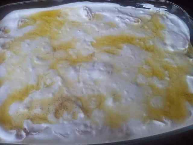 • Απλώνουμε επάνω στο γιαούρτι ομοιόμορφα σε όλην την επιφάνεια και με ένα πιρούνι κάνουμε λίγες αυλακιές να εισχωρήσει το βούτυρο μέχρι κάτω……Και