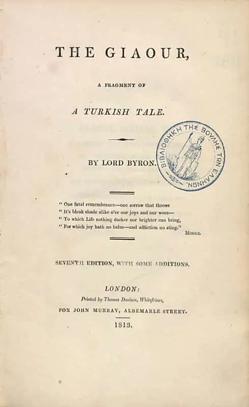 Ο λόρδος Βύρων (George Gordon Byron, 6th Baron Byron), έχοντας βοηθήσει ενεργητικά τον αγώνα της ελευθερίας των Ελλήνων, αναδείχτηκε σε σύμβολο του Φιλελληνισμού και στον κατεξοχήν ρομαντικό ήρωα. Από αρχαιολάτρης, περιηγούμενος τις ελληνικές περιοχές ήδη προεπαναστατικά και εμπνεόμενος από την Ελλάδα κορυφαία ποιητικά έργα –όπως την Κατάρα της Αθηνάς (1810), το Προσκύνημα του Childe Harold (1812) και τον Γκιαούρ (1813)– υιοθέτησε ένθερμα το αίτημα της Ελληνικής Επανάστασης και Παλιγγενεσίας, και πρωταγωνίστησε στο φιλελληνικό κίνημα, σφραγίζοντάς το με τον θάνατό του στο μαχόμενο Μεσολόγγι.