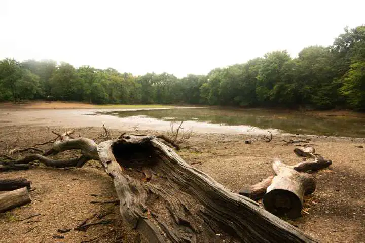 Η Λίμνη Scheuermühlent, στην Κολωνία της Γερμανίας, στο τέλος Ιουλίου, εν μέσω ξηρασίας λόγω καύσωνα. NURPHOTO VIA GETTY IMAGES