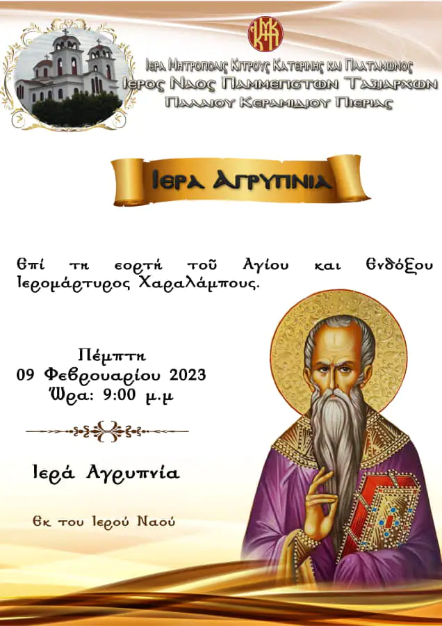 Ιερά Αγρύπνια για τη εορτή του Αγίου Χαραλάμπους