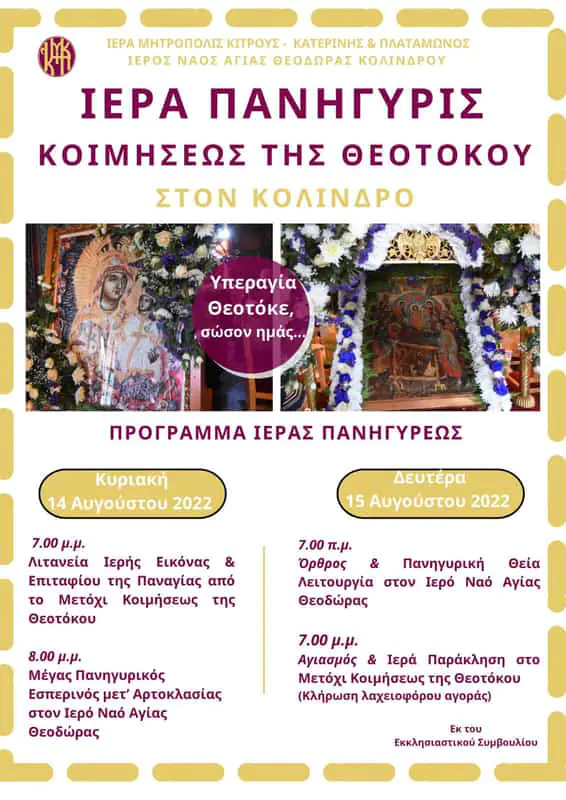 Ιερά Πανήγυρις Κοιμήσεως Θεοτόκου στον Κολινδρό