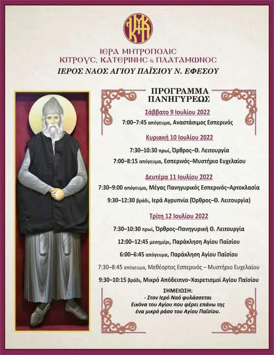Ιερά Πανήγυρις στον Ιερό Ναό Αγίου Παϊσίου Νέας Εφέσου.