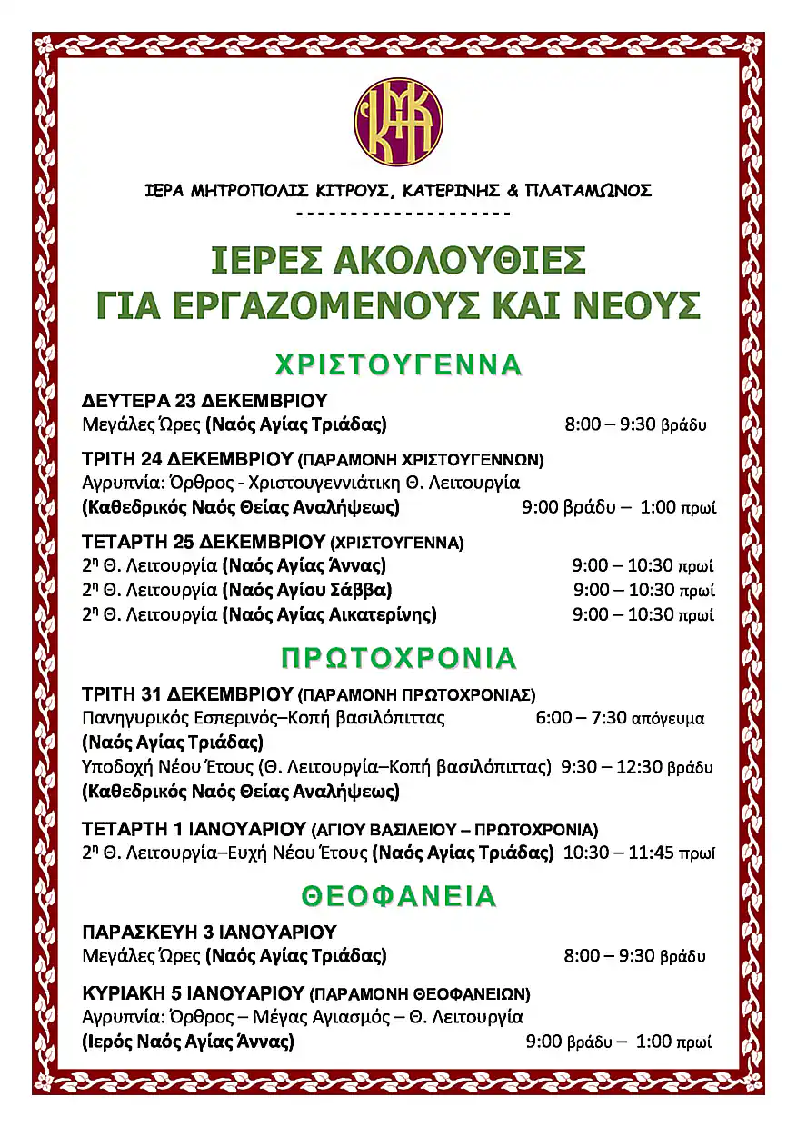 Ιερές Ακολουθίες στην Ιερά Μητρόπολη Κίτρους, Κατερίνης και Πλαταμώνος
