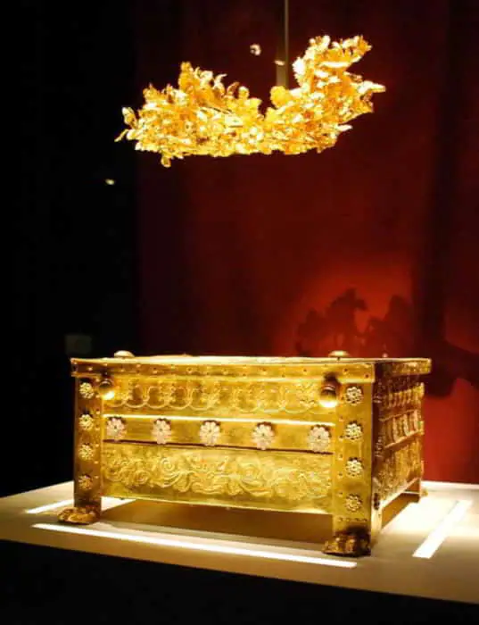 Στην χρυσή λάρνακα το ολόχρυσο στεφάνι σε σχήμα φύλλων βελανιδιάς