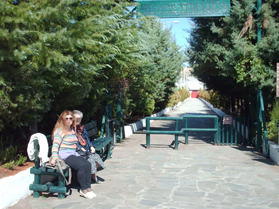 Έξω από την σπηλιά υπάρχει καφετέρια. Μπορείς να καθίσεις εκεί, στη σκιά στο μπαλκόνι στα τραπεζάκια, που είναι και λίγο πιο ψηλά, και φυσάει καλύτερα.