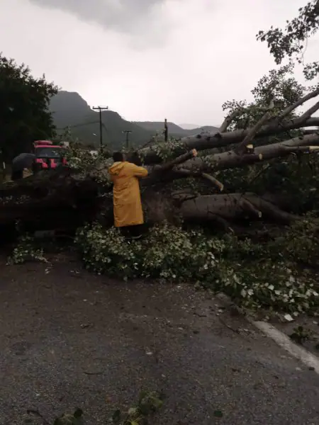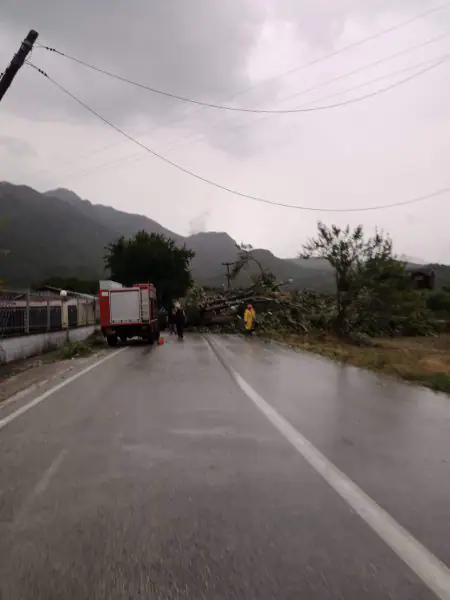 Μεγάλες ζημιές καταγράφονται και πέριξ της πόλεως, ενώ αιωνόβιος πλάτανος έσπασε και έκοψε στα δυο το δρόμο προς Διάβα.