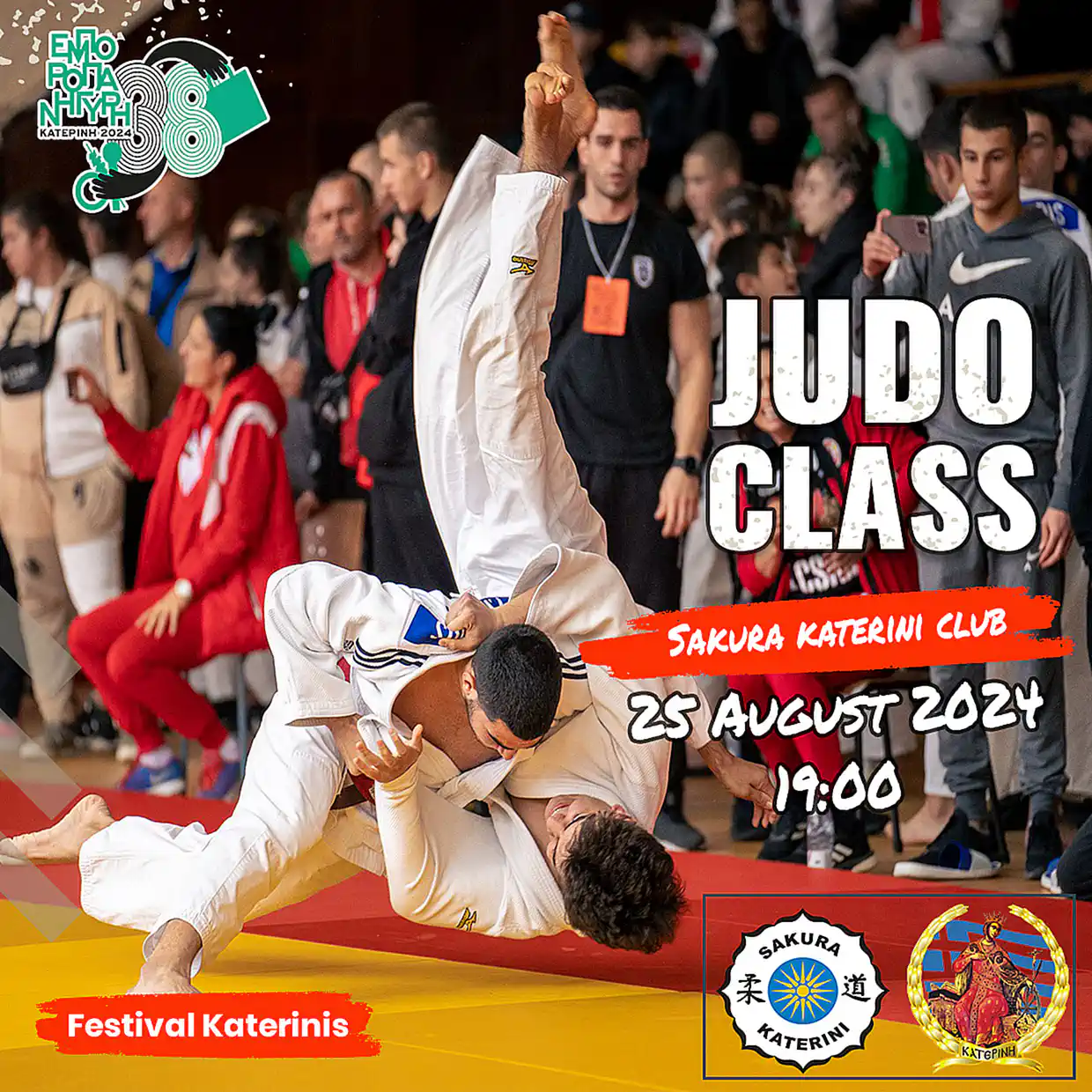 Νωρίτερα (ώρα 19:00), στην κεντρική σκηνή, το Sakura Katerini Judo Club θα παρουσιάσει επίδειξη της τέχνης του #JUDO με τους μαθητές του.