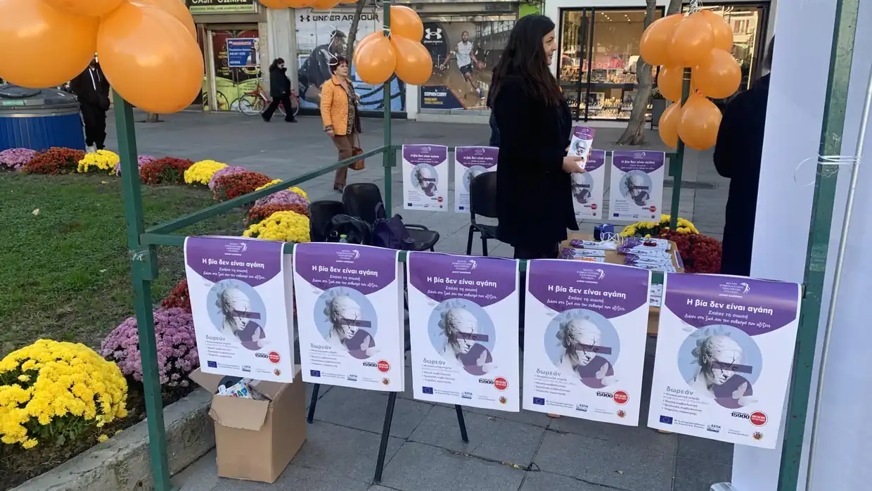 Μαζί τους στην πλατεία βρίσκεται και η Υπηρεσία Αντιμετώπισης Ενδοοικογενειακής Βίας της Ελληνικής Αστυνομίας, που ενημερώνουν για το νομικό πλαίσιο της έμφυλης βίας και τις δράσεις για άμεση επέμβαση.