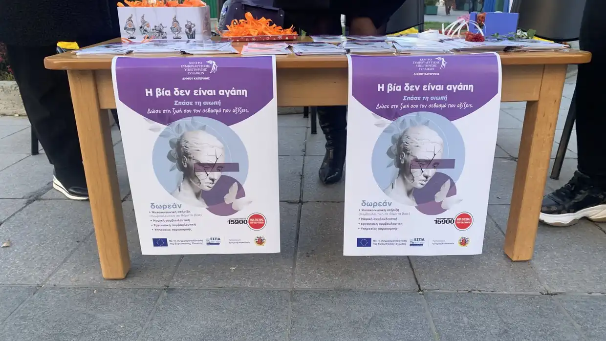 Το Κέντρο Συμβουλευτικής Υποστήριξης Γυναικών του Δήμου Κατερίνης βγαίνει στην Πλατεία Ελευθερίας σήμερα Δευτέρα 24 Νοεμβρίου 2025 εν όψει της Παγκόσμιας Ημέρας Εξάλειψης της Βίας Κατά των Γυναικών που είναι στις 25 Νοεμβρίου.
