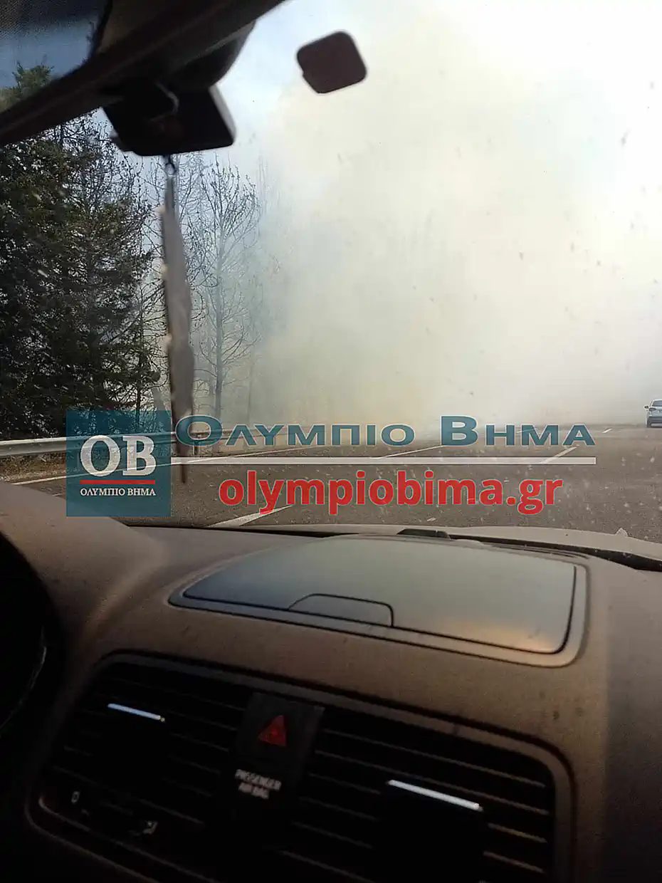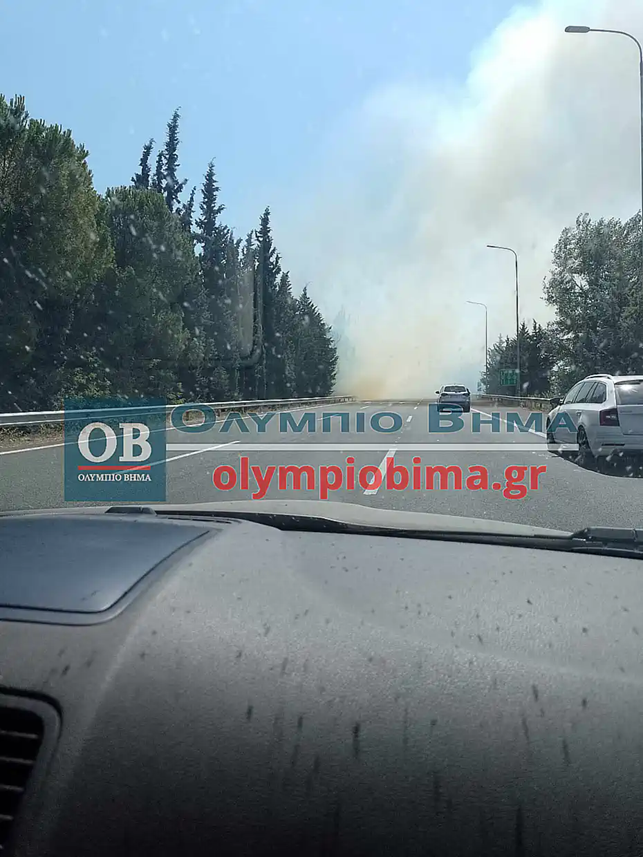 Μεγάλη φωτιά ξέσπασε το μεσημέρι λίγο μετά τις 14:00 στην εθνική οδό Θεσσαλονίκης – Κατερίνης λίγο μετά τα ΣΕΑ Κορινού από άγνωστες μέχρι στιγμή αιτίες.
