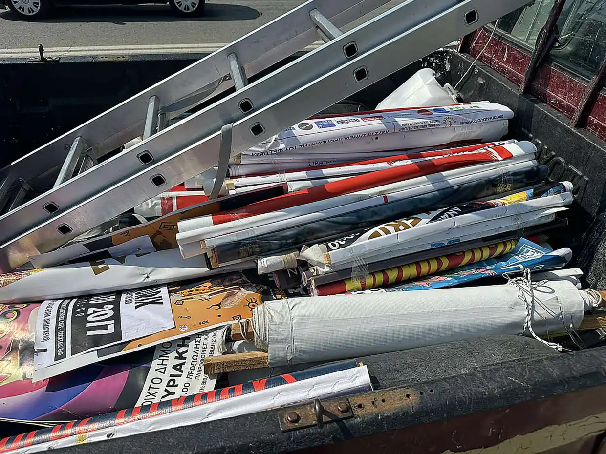 Σε μαζικές καθαιρέσεις πανό και αφισών προχώρησαν η Υπηρεσία Καθαριότητας & η Δημοτική Αστυνομία